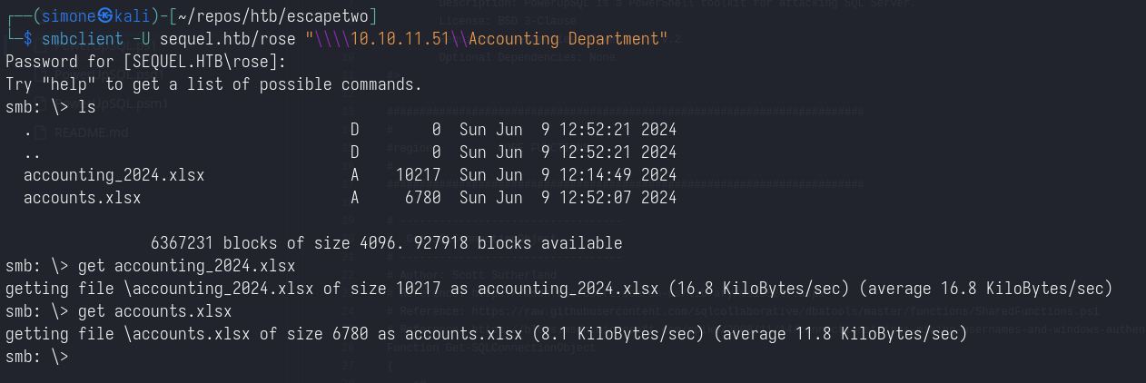 smbclient -U sequel.htb/rose "\\\\10.10.11.51\\Accounting Department"