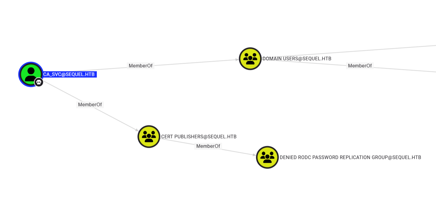 This means that, using the user ryan, we can first change the owner of the ca_svc user, then grants ourself the GenericAll permission over the same object and, in the end, force a password change for the ca_svc user.