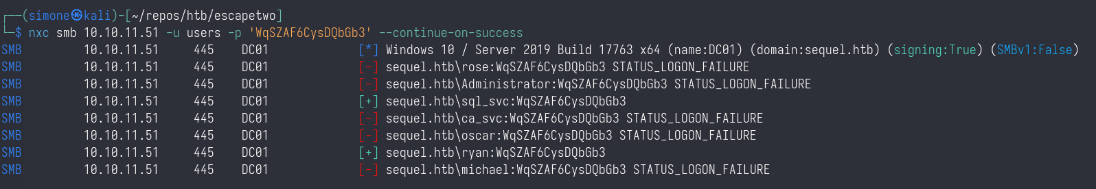 nxc smb 10.10.11.51 -u users -p 'WqSZAF6CysDQbGb3' --continue-on-success